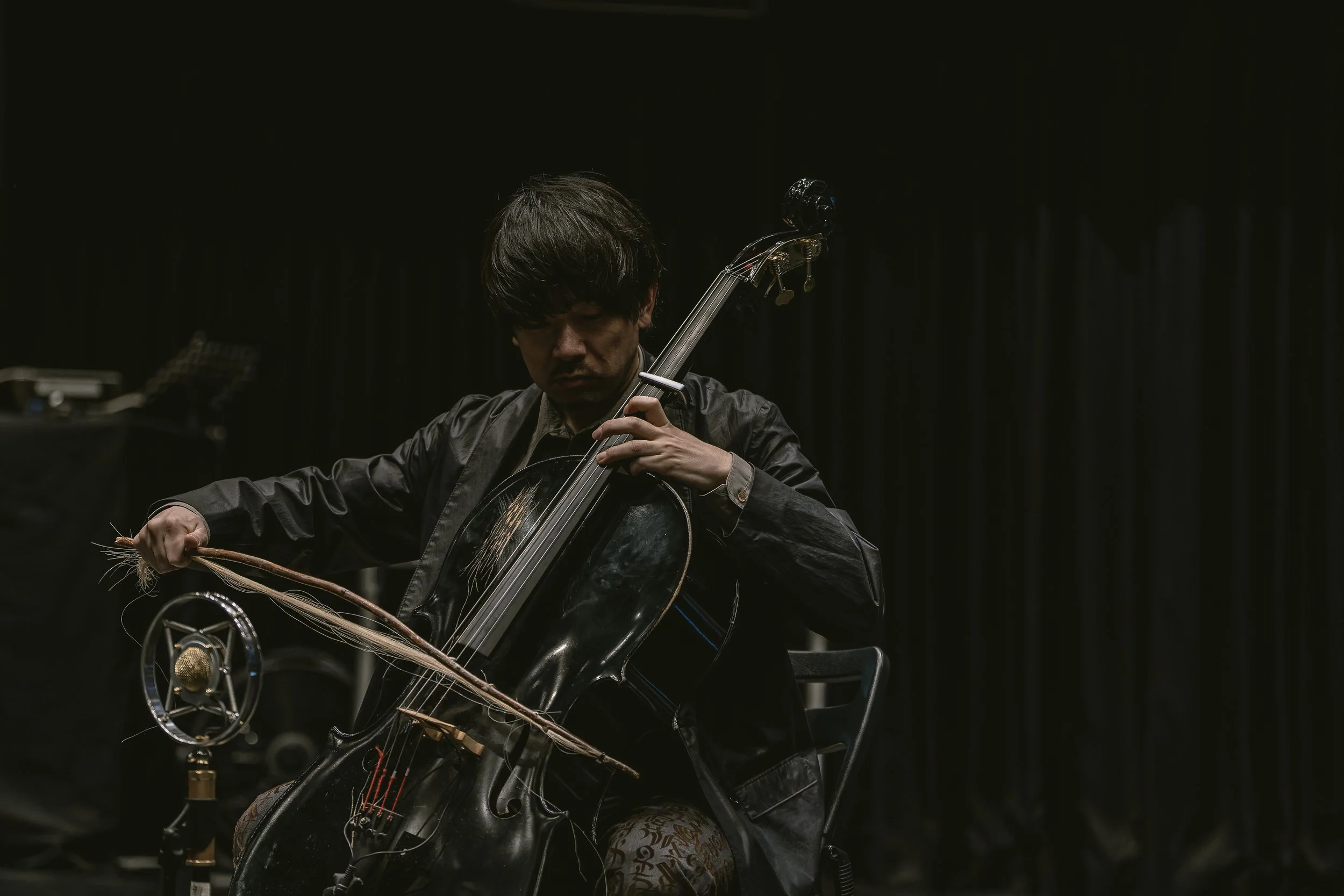 Nakagawa’s musical roots lie in the improvisation and noise scenes of the Kansai region in Japan. After performing with electric bass and effects, he transitioned to the cello as a self-taught musician, developing a unique sonic language over more than 15 years.